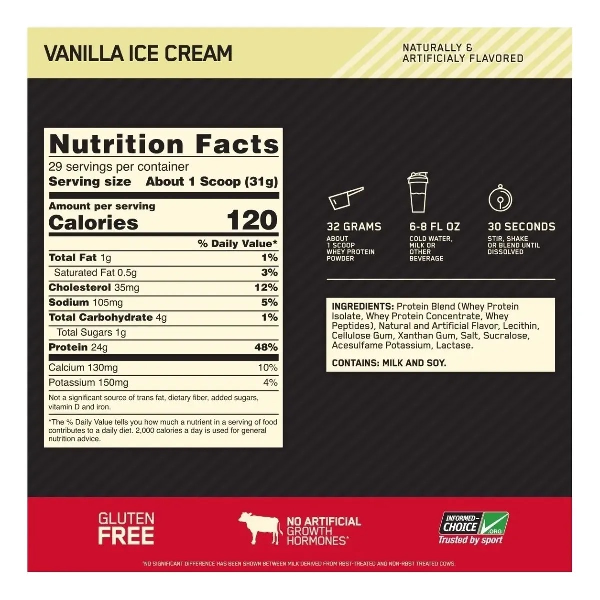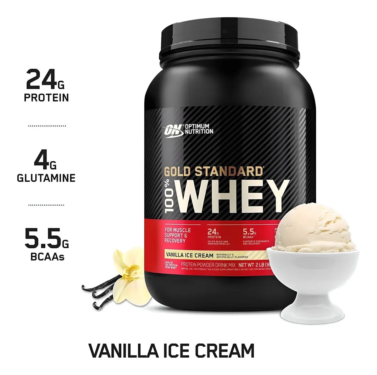 Whey Protein Gold Standard 100% Sabor Sorvete De Baunilha Pote Com 907g Optimum Nutrition